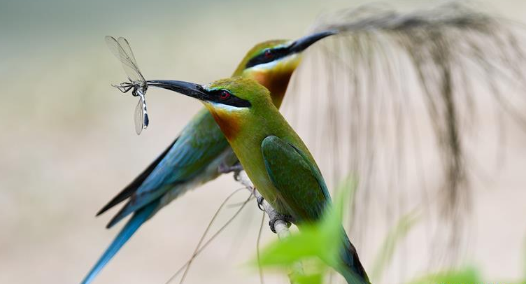 近日,不少栗喉蜂虎來(lái)到海南省海口市筑巢繁殖,據(jù)??诋z榃濕地研究所工作人員統(tǒng)計(jì),目前來(lái)到??诘睦鹾矸浠⒁延薪?00只。