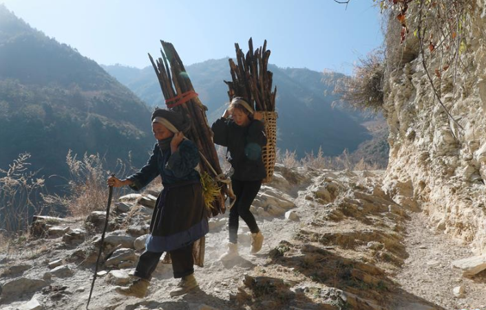 余永妹肩上扛著的,是捆捆木柴,更是對這個家庭的一份責任。余永妹生活在云南省怒江傈僳族自治州蘭坪縣兔峨鄉(xiāng)扎局村雙麥地小組。
