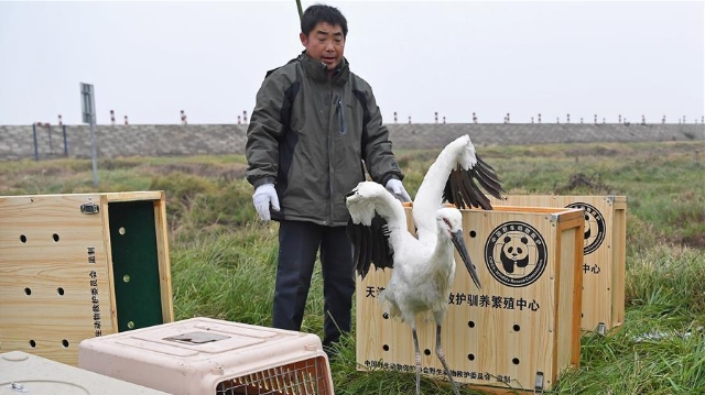 1月14日,江西省野生動植物救護繁育中心、天津市野生動物救護馴養(yǎng)繁殖中心在江西鄱陽湖國家級自然保護區(qū)將16只被救治的珍稀候鳥成功放飛。