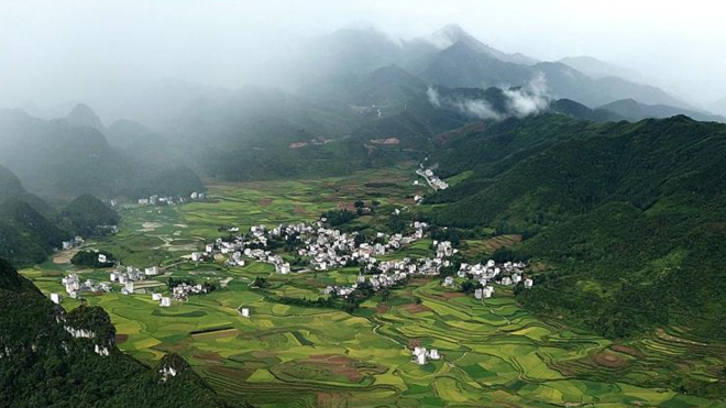 初秋時(shí)節(jié),廣西隆林各族自治縣克長鄉(xiāng)田野鋪金,山青水綠,呈現(xiàn)出一幅清新的秋日畫卷。