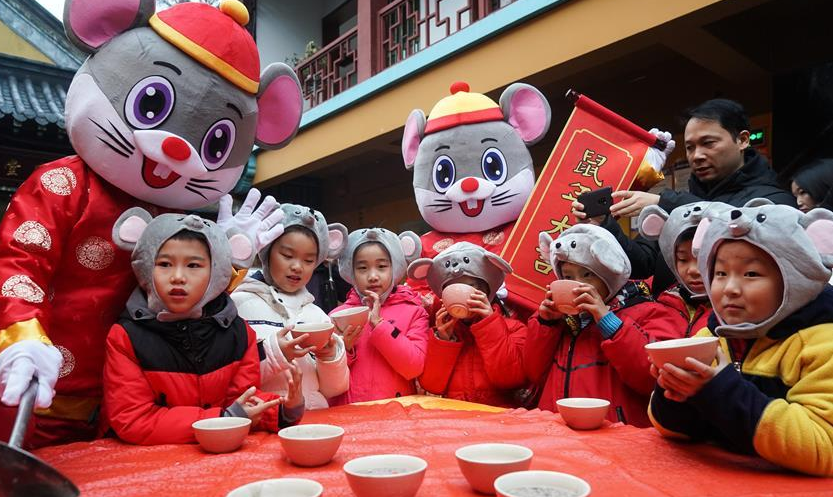 1月2日,小朋友在南京玄奘寺的贈粥送祝?;顒蝇F(xiàn)場喝臘八粥。 當(dāng)日是農(nóng)歷臘月初八,中國傳統(tǒng)臘八節(jié)。