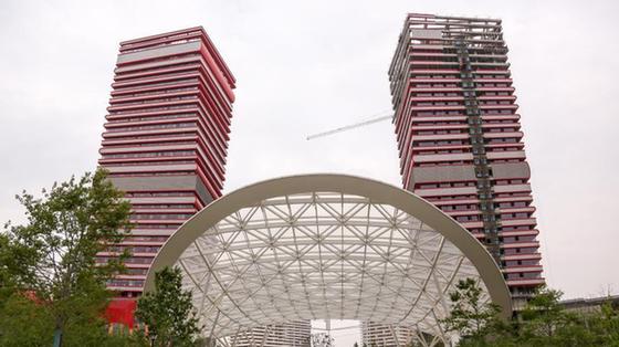 武漢兩棟在建大樓外形奇特 酷似高聳書堆