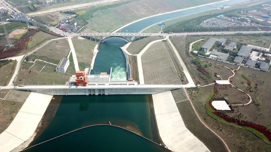 河南淅川,航拍“南水北調(diào)中線工程”渠首大壩。南水北調(diào)中線工程的源頭是丹江口水庫,渠首在河南省南陽市淅川縣丹陽村。