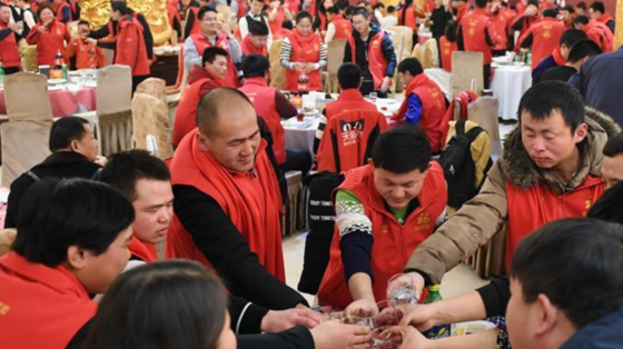2月8日,快遞員及其家屬在京團聚過小年。當日,過年期間在北京值守的快遞員及其家屬共400人在北京團聚,在歡樂的氣氛中度過“小年夜”。