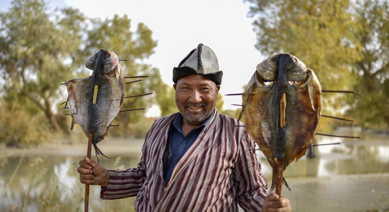 羅布人村寨位于新疆巴音郭楞蒙古自治州尉犁縣,塔里木河從這里流過,沙漠、胡楊、湖泊的奇妙組合吸引了不少游客。生活在這里的羅布人阿木東·艾不東更成為大家關(guān)注的焦點。