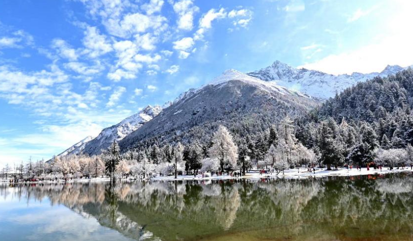 四川畢棚溝降雪 一夜美成天堂