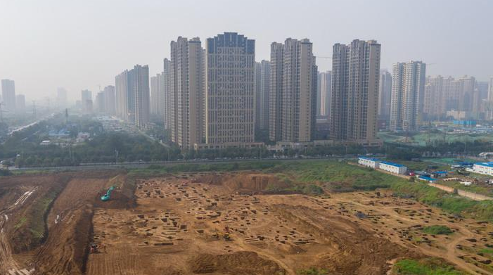 西安宜家工地挖出古墓 空中俯瞰數(shù)百墓坑密密麻麻