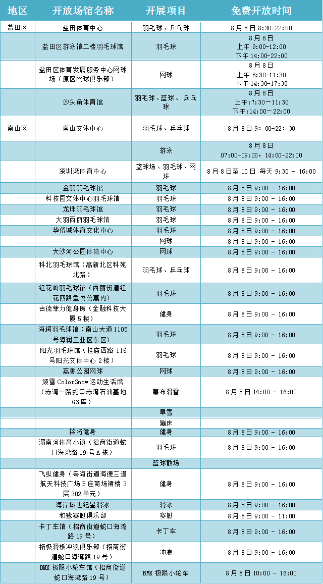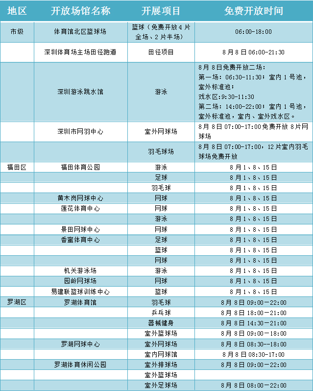 附:場館免費(fèi)開放表
