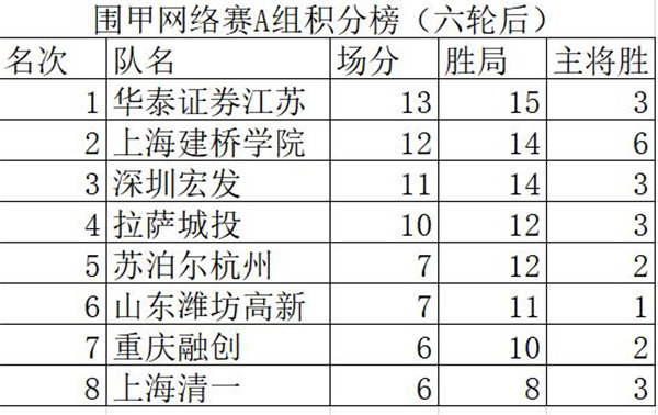 [附:2020年“華為手機杯”中國圍棋男子甲級隊聯(lián)賽網(wǎng)絡熱身賽A組積分排名表]