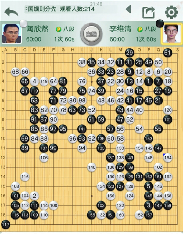 第三臺:李維淸八段(負)陶欣然八段