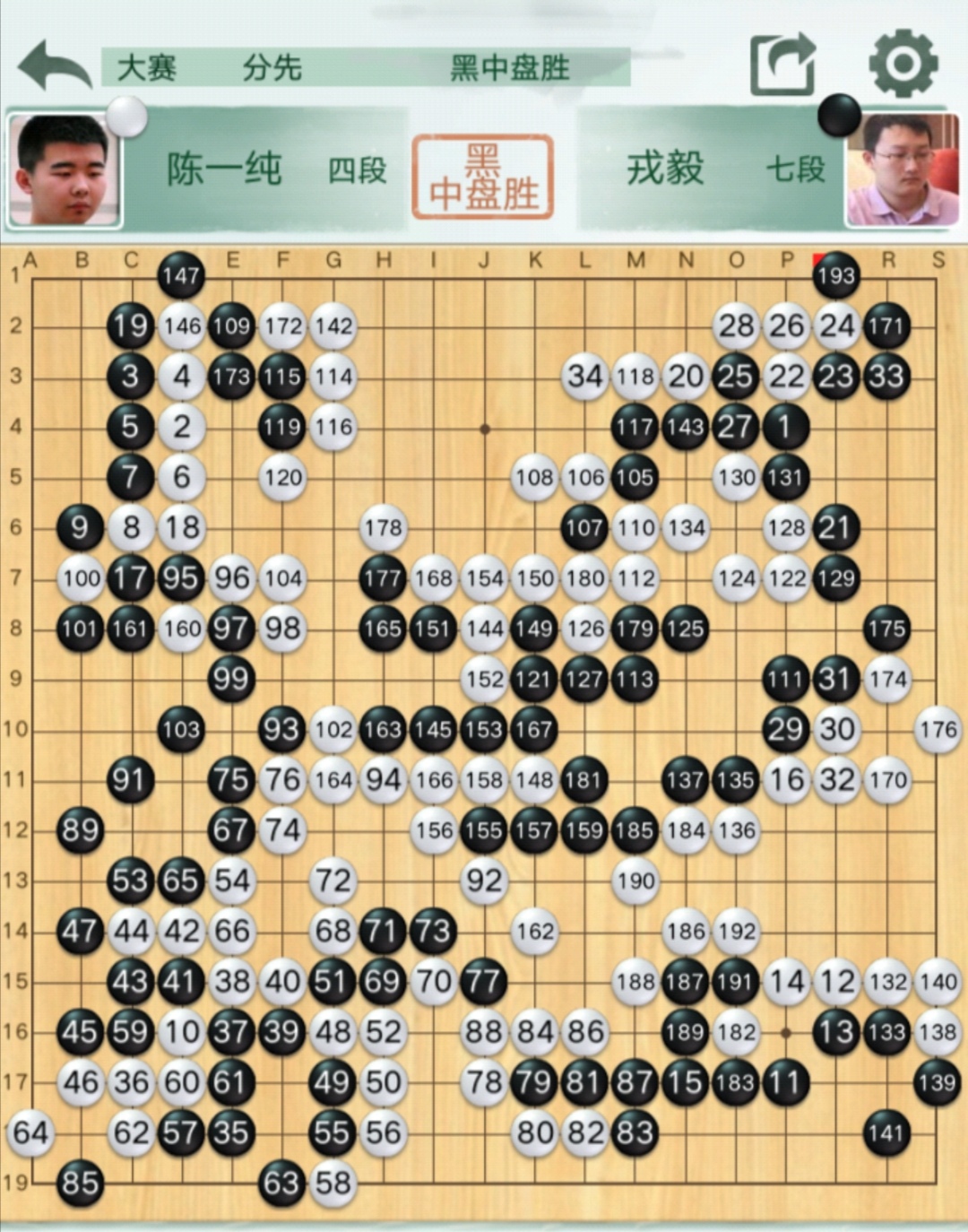 三臺(tái):戎毅七段對(duì)陳一純四段