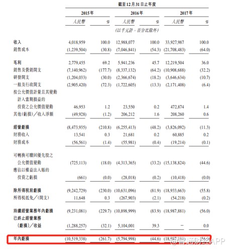 收入快速增長的同時,公司的虧損正在逐漸收窄。公司2015年虧損59億元,2016年虧損54億元,2017年虧損28億元,離扭虧為盈越來越近。