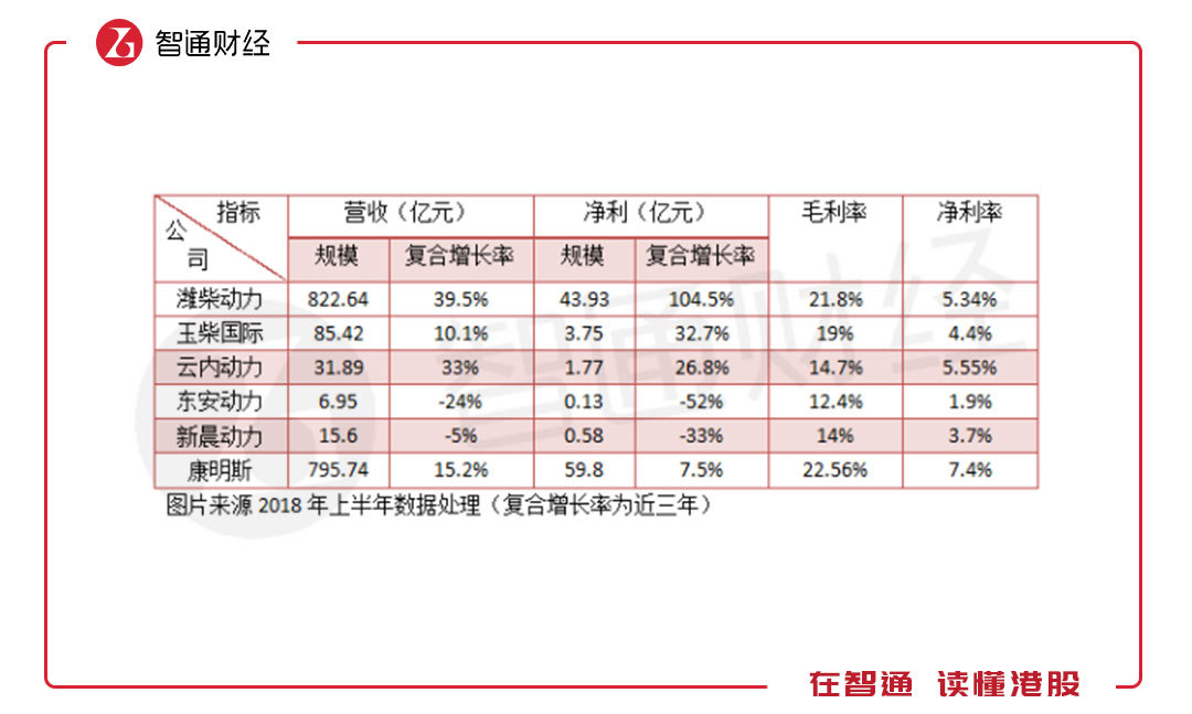 國內(nèi)的發(fā)動機供應(yīng)市場高度集中,前十大供應(yīng)占據(jù)了超過7成的份額,主要為柴油機供應(yīng),適用于商用車,龍頭濰柴動力(02338)市場份額最大。汽油機適用于乘用車,由于主要為內(nèi)供,市場數(shù)據(jù)較少。與國際龍頭康明斯相比,上半年國內(nèi)的柴油機企業(yè)賺錢能力還是較低的。