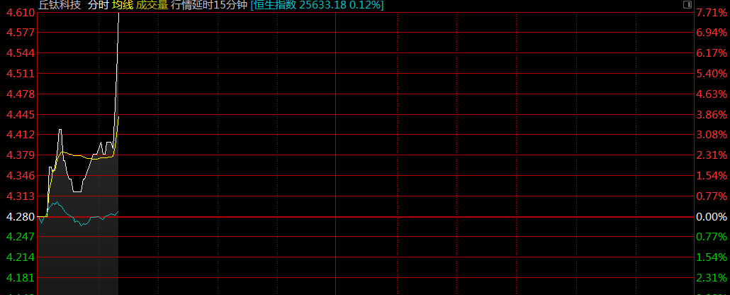 智通財(cái)經(jīng)APP獲悉,丘鈦科技(01478)今日大幅上漲,盤(pán)中漲幅超6%,截至10:22,漲7.71%,報(bào)4.61港元,成交額1069萬(wàn)港元。