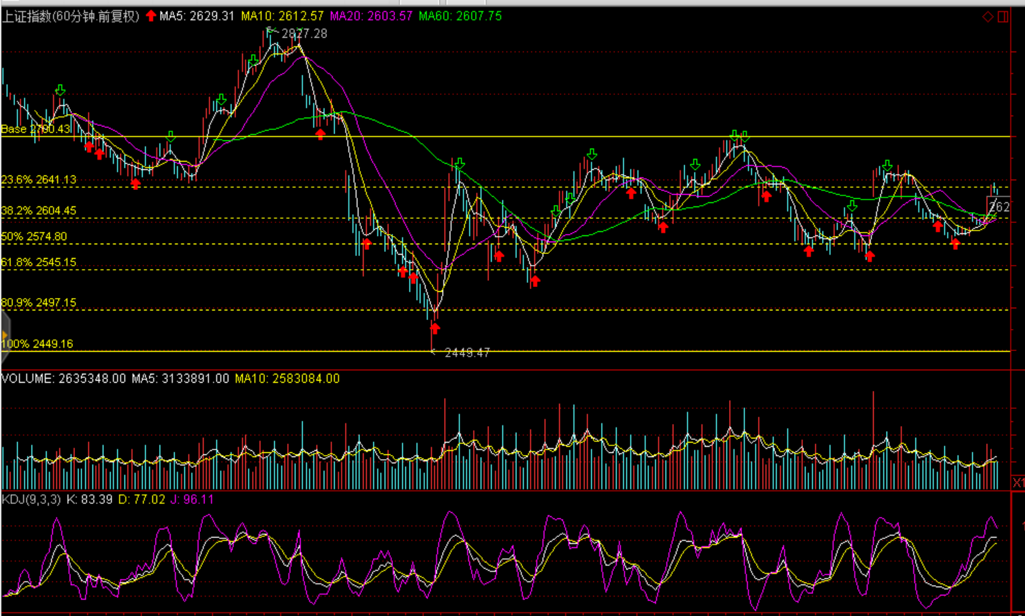 技術(shù)面:股指重返20日均線,量價配合,短期延續(xù)震蕩反彈;60分鐘滬綜指2640點、創(chuàng)業(yè)板1360點一線仍需震蕩消化,20周均線構(gòu)成本周反彈壓力。