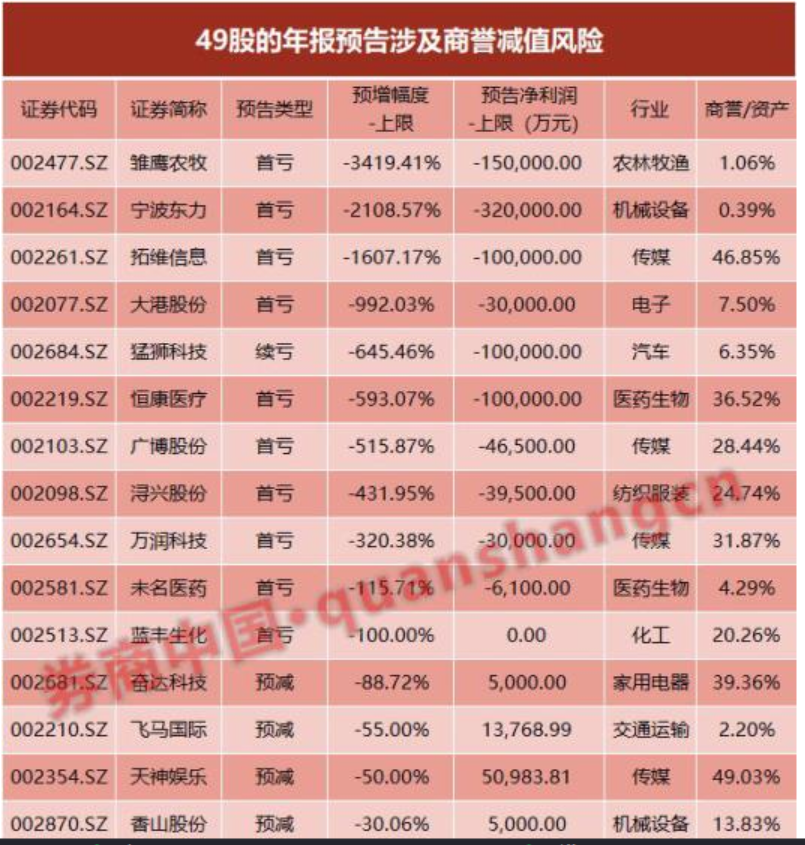 操作建議:本周外圍股市圣誕休市,A股超跌、政策利好顯現(xiàn)下有望企穩(wěn)、回升;50白馬藍(lán)籌持續(xù)調(diào)整顯示中線資金籌碼松動(dòng),市場(chǎng)結(jié)構(gòu)性價(jià)值中樞再下臺(tái)階,近期注意回避業(yè)績(jī)風(fēng)險(xiǎn),尤其是商譽(yù)減值對(duì)公司年報(bào)影響。創(chuàng)歷史新高的1.4萬(wàn)億A股商譽(yù),已切實(shí)地影響上市公司的年度業(yè)績(jī);在已發(fā)布的年報(bào)業(yè)績(jī)預(yù)告中國(guó),有49家公司認(rèn)為存在商譽(yù)減值風(fēng)險(xiǎn),將在2018年年底進(jìn)行減值測(cè)試,一旦確認(rèn)減值,將導(dǎo)致2018年業(yè)績(jī)下滑、轉(zhuǎn)虧或擴(kuò)大虧損,商譽(yù)減值成為一些公司業(yè)績(jī)不確定性的一大來(lái)源。