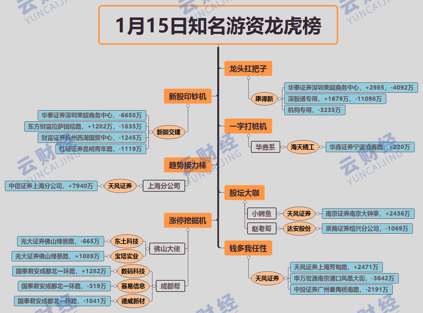 其他游資方面,趙老哥賣出達(dá)安股份(300635)1069萬,佛山幫買入寶塔實(shí)業(yè)(000595)1089萬,賣出東土科技(300353)665萬,成都幫買入數(shù)碼科技(300079)1282萬,割肉賣出德威新材(300325)1041萬。