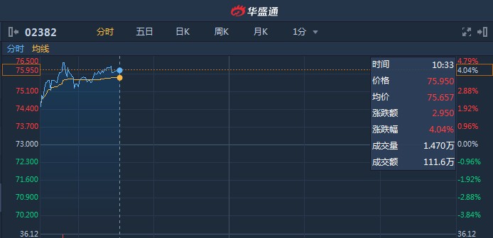 智通財(cái)經(jīng)APP獲悉,華為推出首款5G芯片,5G的不斷消息刺激,助力手機(jī)產(chǎn)業(yè)鏈近兩日持續(xù)走高,截至10時(shí)32分,舜宇光學(xué)(02382)漲4.11%,報(bào)價(jià)76港元,成交額3.31億。截至發(fā)稿,瑞聲科技(02018)兩日累漲近6%。(王岳川)