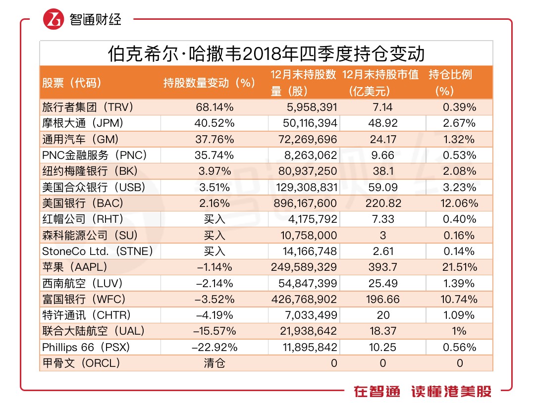 在愁云密布的2018年四季度,美股三大指數(shù)大幅下挫,令全年創(chuàng)下金融危機來最差年度表現(xiàn),在這段泥沙俱下的時間里,各路機構(gòu)資金積極調(diào)倉。在跌勢下,“股神”巴菲特逆勢增持金融股,減持科技及消費股。
