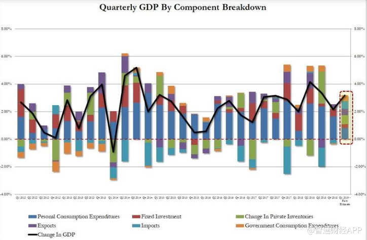 智通財經APP獲悉,美國第一季度GDP增長3.2%,遠高于預期的2.5%,并且創(chuàng)自2015年以來最高第一季度增速。