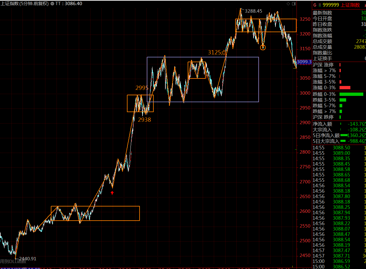 本周上證指數(shù)跌回了本輪上漲趨勢的第二個三十分鐘中樞,宣告了此次三十分鐘級別上漲趨勢的終結(jié)。本周指數(shù)若能突破3125點,需關(guān)注上方五分鐘中樞的第三類賣點機會(3150點至3204點之間)。中線角度,2968點為強支撐位。