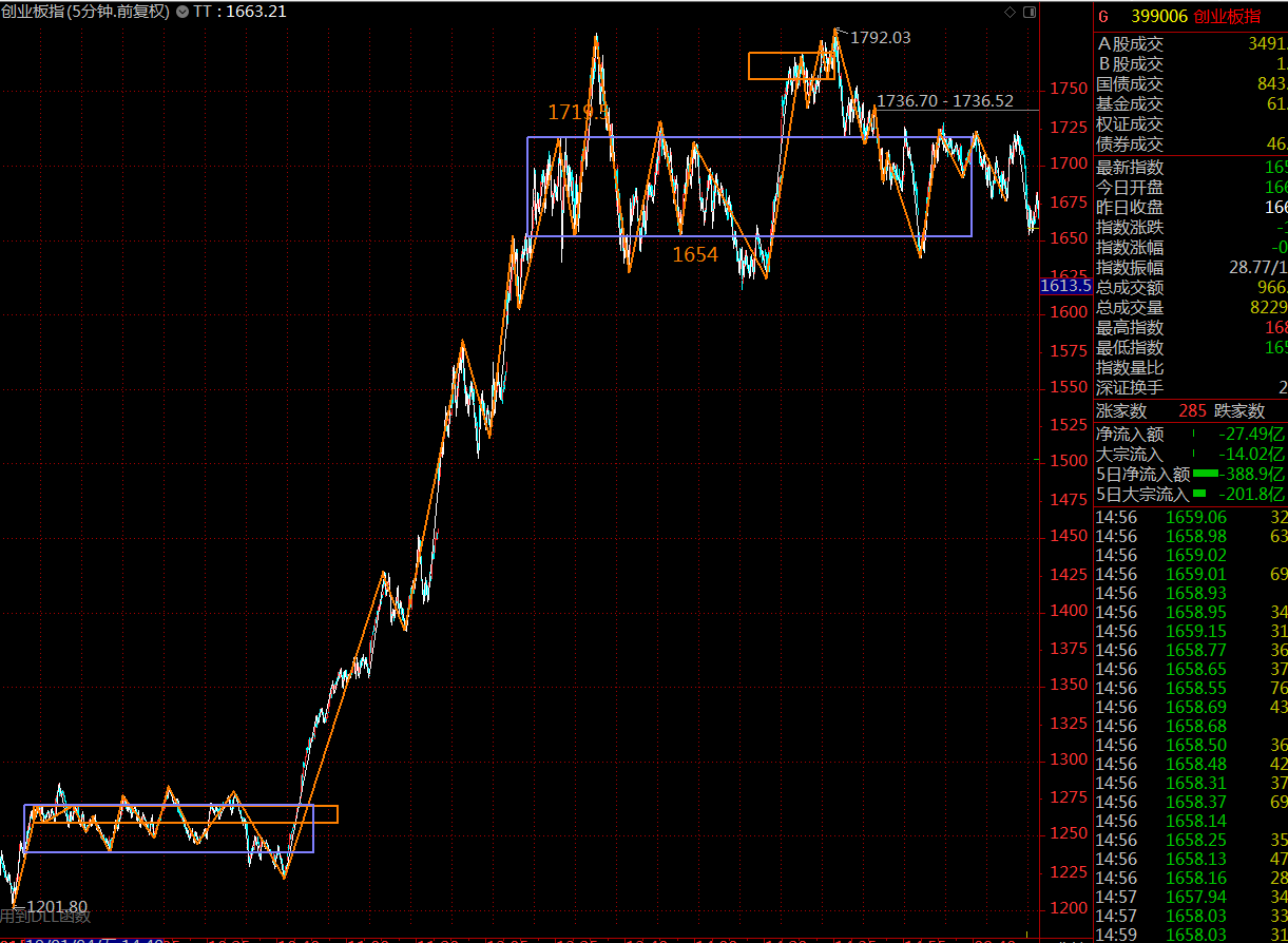 創(chuàng)業(yè)板指數(shù)相對弱勢,本周兩次上攻1720點壓力位未果,現(xiàn)再一次回撤至中樞下軌1654點附近,關(guān)注該點位的支撐力度,跌破后,需第一時間控制倉位,防范風(fēng)險。