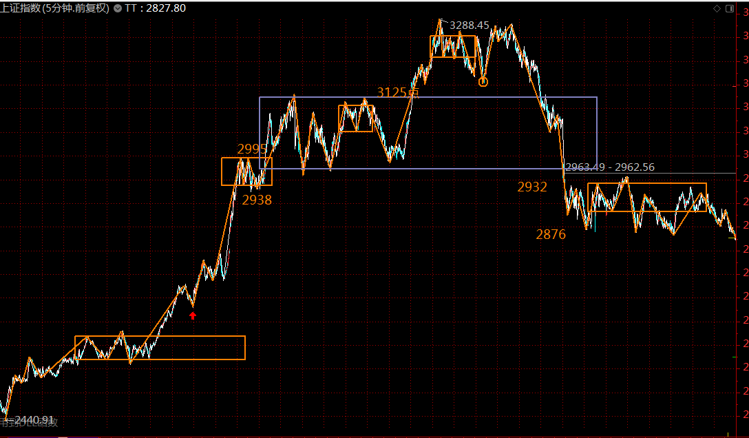 下圖為上證指數(shù)五分鐘級別走勢結(jié)構(gòu)。短線看,上證指數(shù)這段從2934點開始的回落線段,已進(jìn)入空頭陷阱區(qū)域,本周初將完成下方五分鐘中樞的第一類買點構(gòu)造,突破2940點之后,上漲趨勢將開啟,目標(biāo)3050-3100之間。