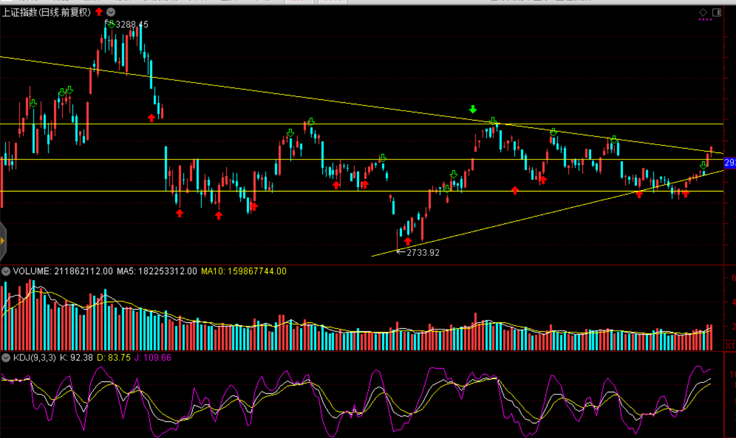 周一兩市A股窄幅整理,上證指數(shù)收盤漲0.08%報(bào)2914.48點(diǎn),連續(xù)三日收漲;深證成指跌0.02%;創(chuàng)業(yè)板指跌0.33%。兩市成交4608億元,較前一交易日放大511億元。