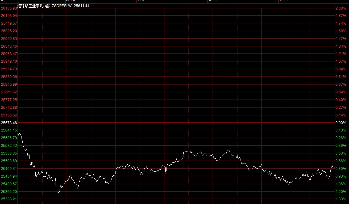 中美貿易磋商取得實質性進展,美股三大指數周一上漲。道指全日保持升幅,最多曾升209點,至尾市升勢回順,收報26091點。
