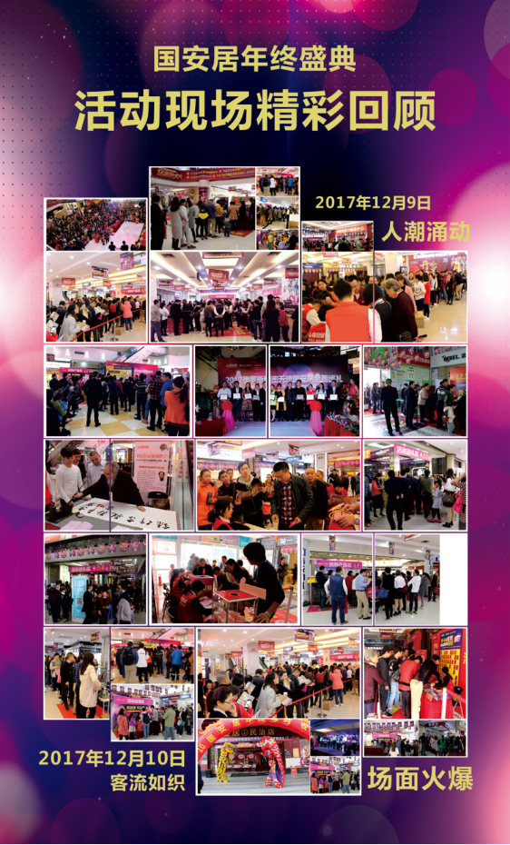 12月9、10日,全城矚目的“2017年國安居年終盛典收官之作暨俄羅斯美麗大使親善之旅”在國安居深惠六店隆重開啟。當(dāng)天國安居800品牌開倉低價(jià)促銷沖量,各店客流如織,場面火爆,早晨八點(diǎn)半,當(dāng)天活動(dòng)還未開始,為了能早點(diǎn)買單,搶到更多的禮包和獎(jiǎng)品,國安居各店門前早早就排起了長隊(duì)。