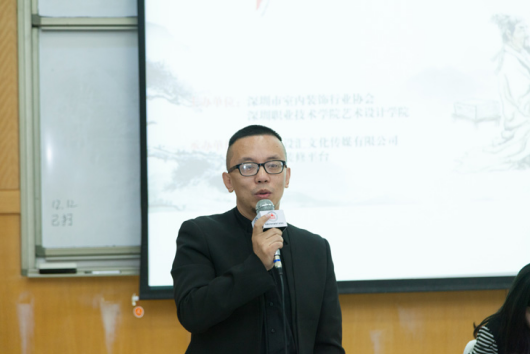 中共深圳市室內(nèi)裝飾行業(yè)協(xié)會支部委員會書記陳子建上臺致辭,他表示黨支部成立以來,在深圳市建筑建材類行業(yè)聯(lián)合黨委(籌)的領(lǐng)導下,一直積極投入?yún)⑴c系列的公益活動,《師說三人行》活動的成功的舉辦,是校企合作落實到黨建工作中的一部分。