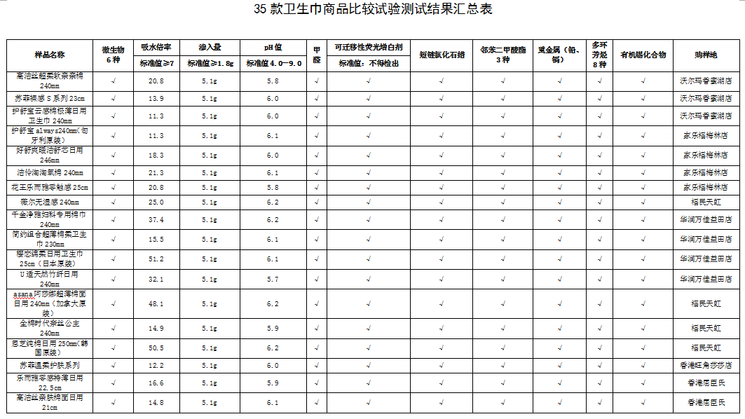 附:衛(wèi)生巾商品比較試驗結(jié)果匯總表