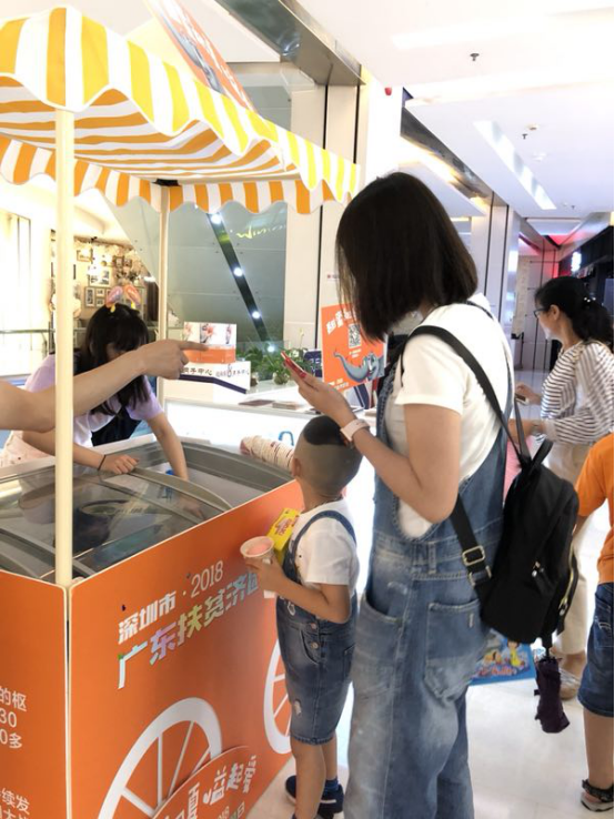 6月23日,“甜蜜初夏 慈善一直在”深圳10大地標(biāo)冰激凌義賣活動(dòng)在在福田星河COCO Park啟動(dòng)。現(xiàn)場(chǎng),很多逛商場(chǎng)的市民掃碼購(gòu)買冰淇淋,為扶貧濟(jì)困活動(dòng)捐款。特別讓志愿者感觸的是,不少家長(zhǎng)帶著小朋友路過(guò),看到是給貧困人們貢獻(xiàn)愛(ài)心,紛紛參與進(jìn)來(lái)要買冰激凌。