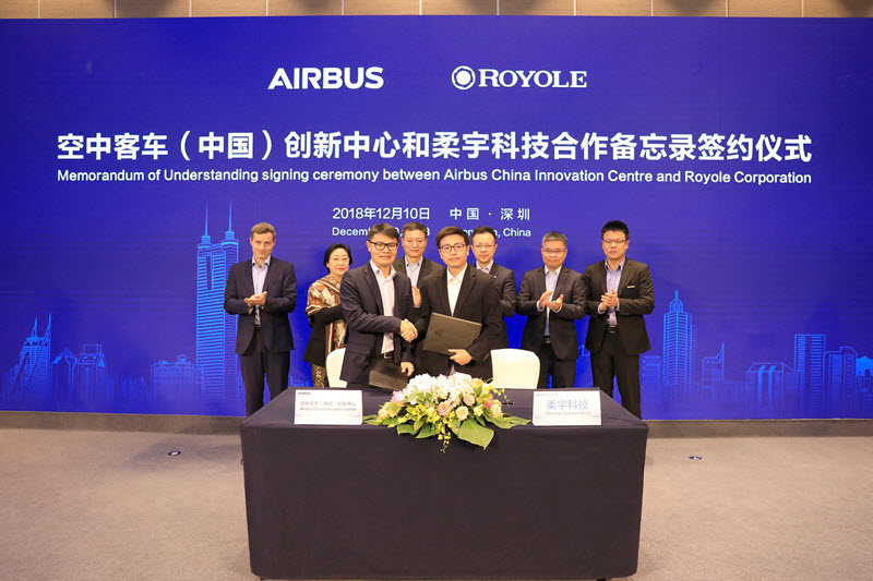 據(jù)了解,早在2018年12月,柔宇科技有限公司與空中客車(中國)創(chuàng)新中心在深圳正式簽署戰(zhàn)略合作備忘錄,雙方將就柔性電子技術(shù)在飛機(jī)客艙等場景的應(yīng)用和商業(yè)合作開展研究,探索柔性顯示、柔性傳感在客艙等場景內(nèi)的應(yīng)用,在客艙環(huán)境、安全性、節(jié)能等方面做進(jìn)一步提升,為乘客打造未來化、數(shù)字化、個性化的乘機(jī)體驗。