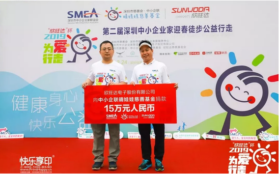 值得一提的是,本屆“為愛行走”活動(dòng)的愛心冠名企業(yè)——中小企聯(lián)常務(wù)副會(huì)長、欣旺達(dá)電子股份有限公司董事長王威現(xiàn)場向中小企聯(lián)晴娃娃慈善基金捐款15萬元人民幣,并對(duì)本次活動(dòng)提供了的全程贊助支持。