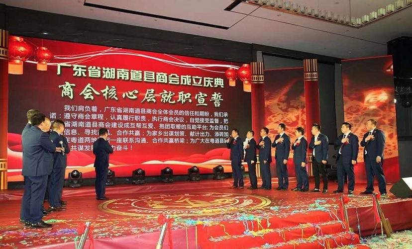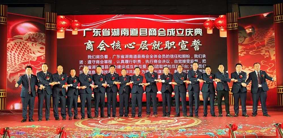 出席商會成立大會的領(lǐng)導(dǎo)為廣東省湖南道縣商會的成立共同揭牌,創(chuàng)會會長周吉長與執(zhí)行會長李濤分別在大會上致辭。周吉長會長在大會致辭中表示,廣東省湖南道縣商會自2018年6月倡議發(fā)起以來,經(jīng)過三次籌備會及第一次全體會員大會,到2019年4月14日正式成立,商會成立后將做好三大方面的重要工作。