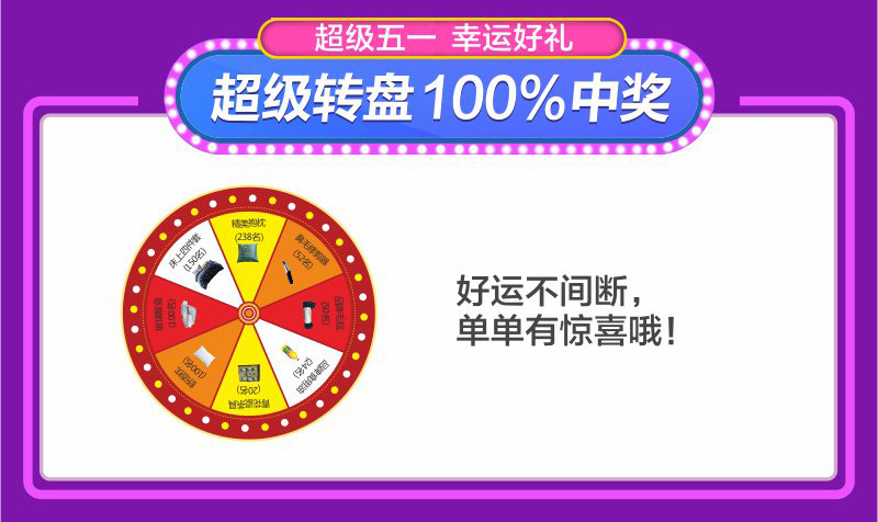 2、超級大轉(zhuǎn)盤,100%中獎:活動期間,顧客憑活動期間的訂單(單筆實付3000以上)即可參與超級大轉(zhuǎn)盤活動,送完即止!