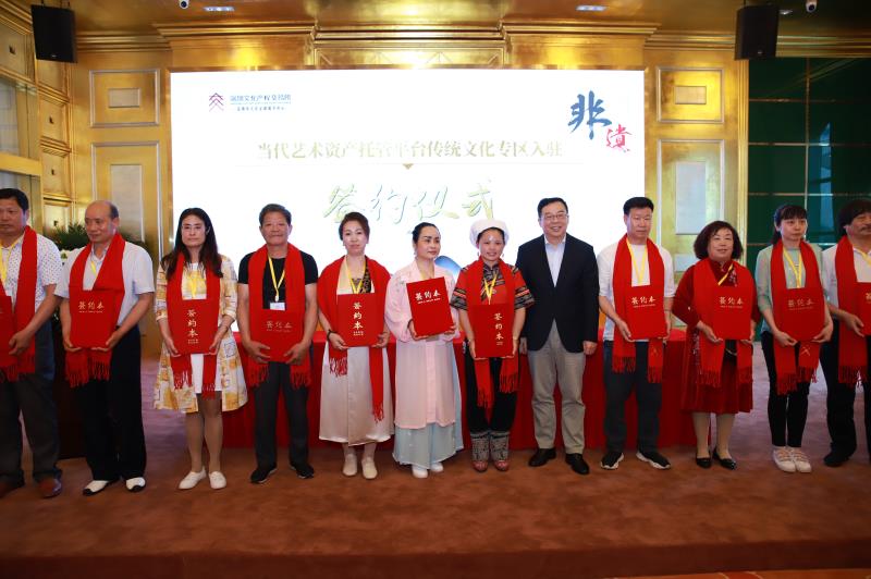 本次活動上,首批入駐當(dāng)代藝術(shù)資產(chǎn)托管平臺傳統(tǒng)文化專區(qū)的20位國家級、省級非物質(zhì)文化遺產(chǎn)傳承人簽約入駐,深圳文交所將為簽約入駐的非遺傳承人提供專業(yè)化服務(wù)。