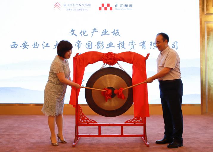 會(huì)上深圳文交所與曲江新區(qū)管委會(huì)簽署戰(zhàn)略合作及業(yè)務(wù)合作協(xié)議,5家掛牌企業(yè)分別是西安曲江大秦帝國(guó)影業(yè)投資有限公司、西安文化科技創(chuàng)業(yè)城股份有限公司、西安曲江國(guó)際會(huì)展(集團(tuán) )有限公司、西安曲江影視投資 (集團(tuán) )有限公司、西安曲江出版?zhèn)髅酵顿Y集團(tuán)有限公司并且現(xiàn)場(chǎng)鳴鑼,成功掛牌“文化產(chǎn)業(yè)板”。
