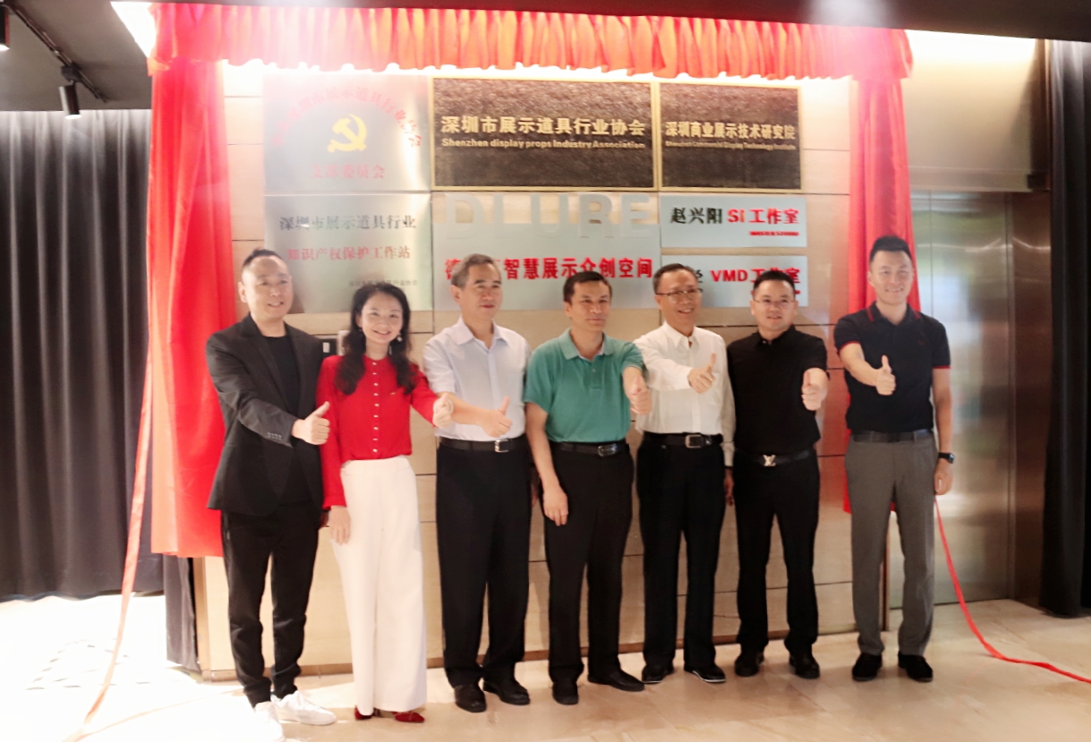 大浪時尚小鎮(zhèn)黨委第一書記劉繼琴、深圳市社會組織管理局副局長孫景明、大浪時尚小鎮(zhèn)建設管理中心主任曹宇昕、大浪時尚小鎮(zhèn)黨委專職副書記曾鳳,市政協(xié)委員、原市民政局處長駱冰,卡爾丹頓服飾股份有限公司品牌總監(jiān)胡屹,市展示道具行業(yè)協(xié)會創(chuàng)會會長駱詩學,商業(yè)展示技術研究院、展示道具行業(yè)協(xié)會秘書長蘇建東,共同為商業(yè)展示總部基地揭牌。