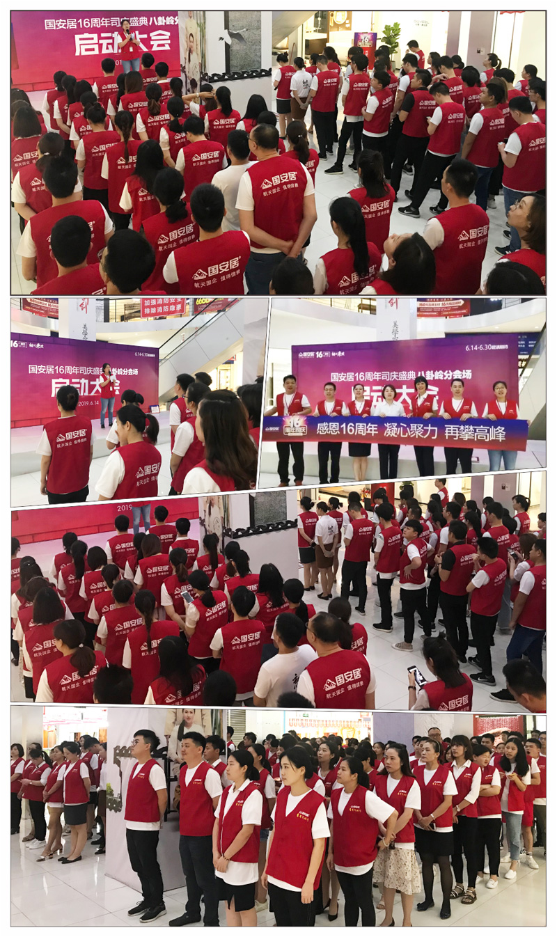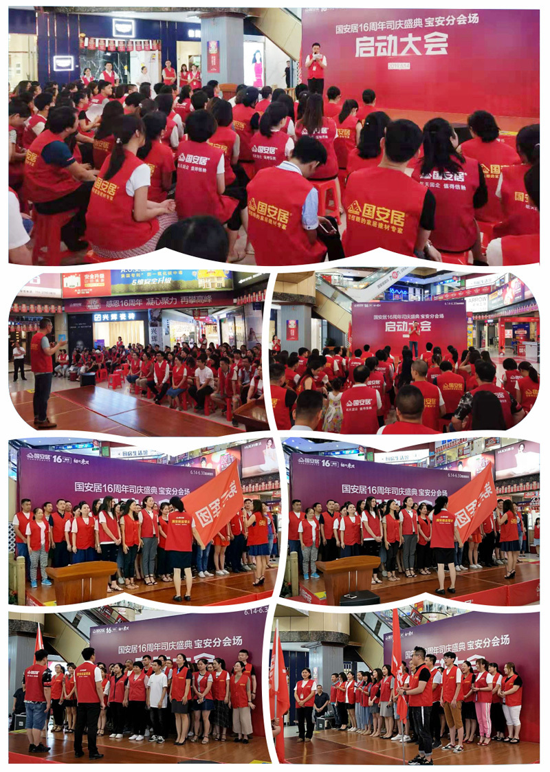 6月13日-14日,國安居“16周年司慶”啟動大會在國安居深惠門店火熱舉行,800家品牌商家的銷售精英、員工代表、熱心市民等近萬余人共同見證了這一意義非凡的時刻。參與者身著統(tǒng)一服裝,早早就聚集在商場中庭,所有人都把笑容掛在臉上,展現(xiàn)出自己最陽光、最開心、最具活力的一面。