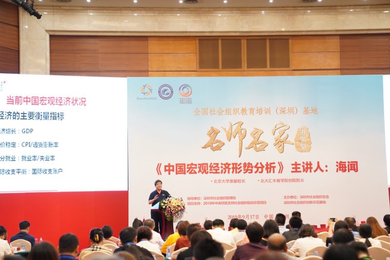 據(jù)介紹,總會依托民政部社會組織服務中心授予的“全國社會組織教育培訓(深圳)基地”設立“名師名家講學堂”,設立兩年多來先后邀請了王石、馬蔚華、馮侖、唐杰、印順等眾多大咖“頭腦風暴”、分享智慧,得到社會各界的普遍認可。今年以來,作為改革排頭兵的深圳再次被委以重任,確定為中國特色社會主義先行示范區(qū),深圳面臨著面臨著全新的挑戰(zhàn)和巨大的機遇??倳鳛椤皡f(xié)會的協(xié)會”,深諳深圳社會組織及企業(yè)的迫切需求,為此講學堂特別邀請深圳匯豐商學院創(chuàng)院院長海聞教授為大家分析中國的宏觀經(jīng)濟形勢,幫助深圳企業(yè)家登高望遠、把握形勢、尋找方法、積極“迎戰(zhàn)”,增強他們憂患意識的同時也增強其克服困難的信心。