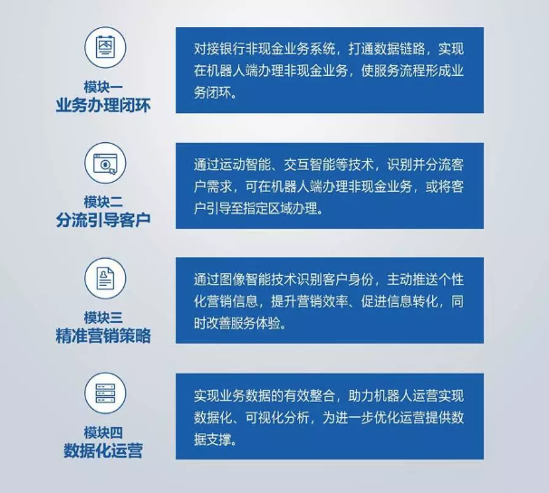 人工智能機器人與金融業(yè)務的完美結(jié)合,助力加速金融網(wǎng)點智能化建設(shè)、提升營銷效率、豐富金融營銷場景。