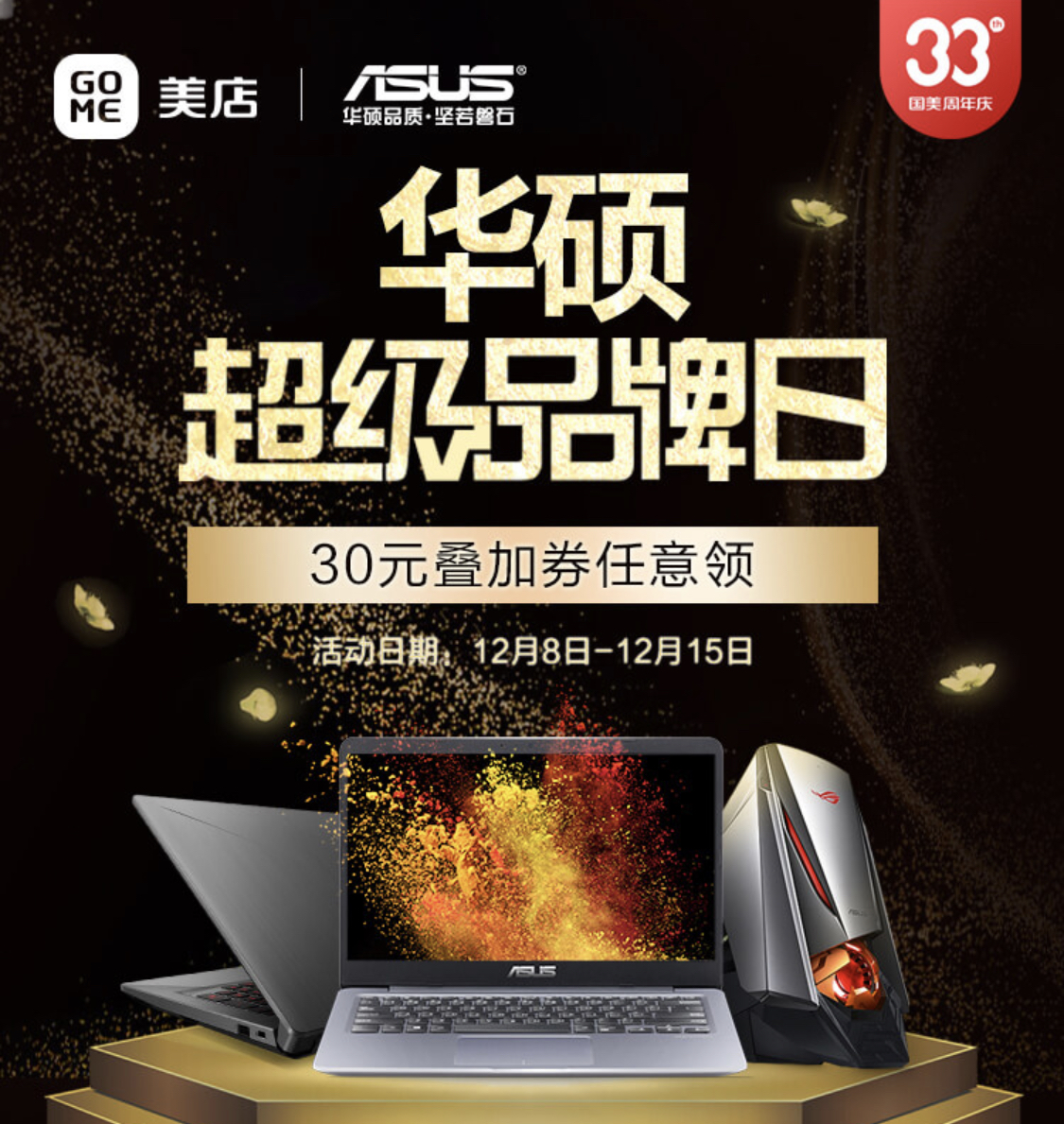 國美33周年華碩超級品牌日,游戲、辦公、輕薄顏值筆記本電腦應(yīng)有盡有,全場產(chǎn)品可領(lǐng)30元無門檻可疊加優(yōu)惠券,相當(dāng)于在原有優(yōu)惠基礎(chǔ)上再降30元。