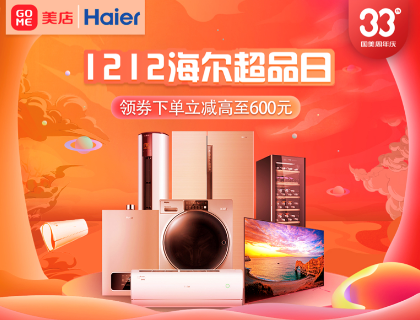 12月12日-15日,33周年生日之際,國美與海爾再度攜手,國美美店帶來1212海爾超級品牌日活動,涵蓋了海爾冰箱、洗衣機、空調(diào)、電視、廚房衛(wèi)浴等多個品類豐富產(chǎn)品,多重優(yōu)惠福利、六大承諾保障、延保清洗服務,其中多個年度爆款值得期待。