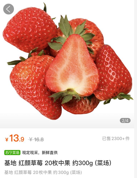 作為萬畝田的合作伙伴,蘇寧比任何人都清楚農(nóng)戶的困境。為了幫助農(nóng)戶解決銷路問題,蘇寧菜場主動向萬畝田采購江寧紅顏草莓,“目前光是南京一個城市,每天就可以售出2000斤左右。”