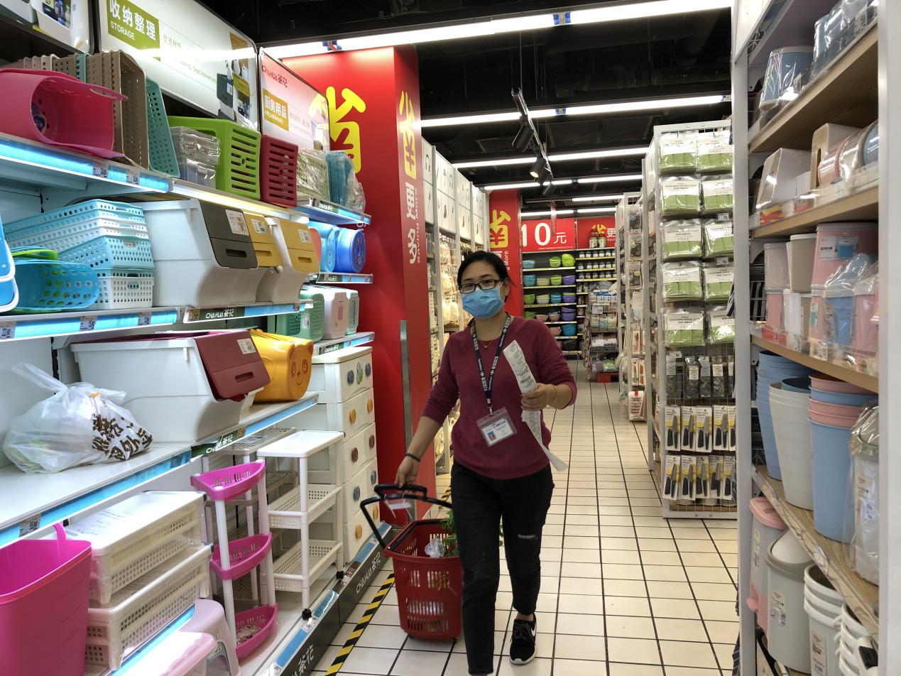 “現(xiàn)在手上這個單有24個商品需要揀貨,這還不算大單,我們有接到過一單上百個商品的,還有總價超過3000元的訂單呢。家樂福梅林店的賣場面積大概是5000平方米,每天上下2層樓跑多少趟具體倒是沒有統(tǒng)計過,但像現(xiàn)在特殊時期,我們一天在網(wǎng)上接到的‘配送到家’服務訂單基本都要超過800單,有時候會到1000單?!?/p>