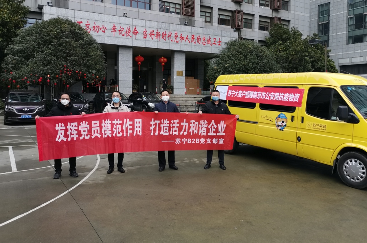 2月11日下午兩點,蘇寧大客戶聯(lián)合江蘇文蘇、南京偉略公司將6萬份酒精棉片及192瓶企業(yè)專用大瓶裝免洗消毒洗手液送到了南京市公安局。此次物資捐贈主要用于警隊一線人員防疫工作使用。事實上,南京市公安局的民警們自疫情爆發(fā)以來就沒有休息過,從農(nóng)歷新年前到現(xiàn)在他們一直堅守崗位為南京城保駕護(hù)航。南京市公安局侯書記、警保處印主任表示,民警們每天要出勤維護(hù)治安,有時還需要上門排查疑似病情,具有一定危險性,這些物資為他們的工作帶來了保障。