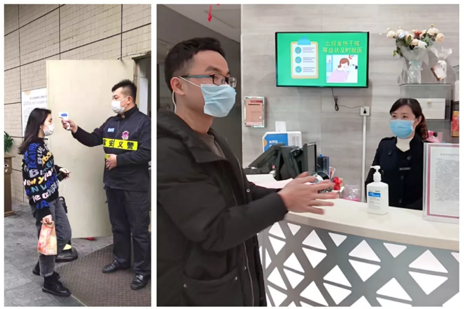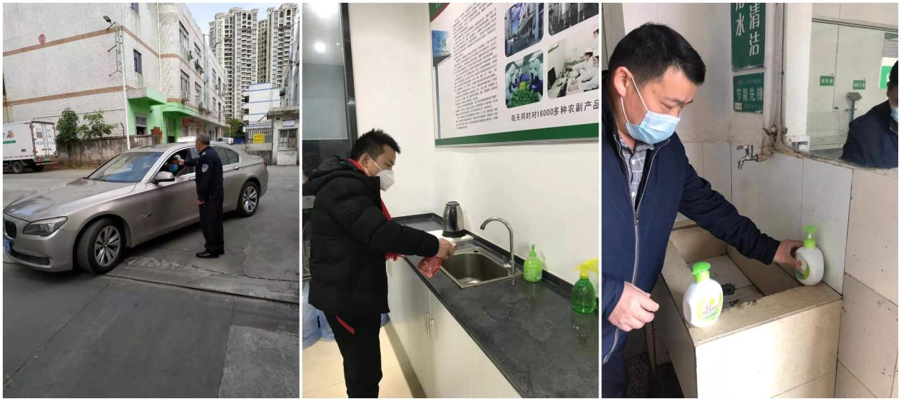 宏鴻集團對進出入人員進行測量體溫、洗手等日常防護工作