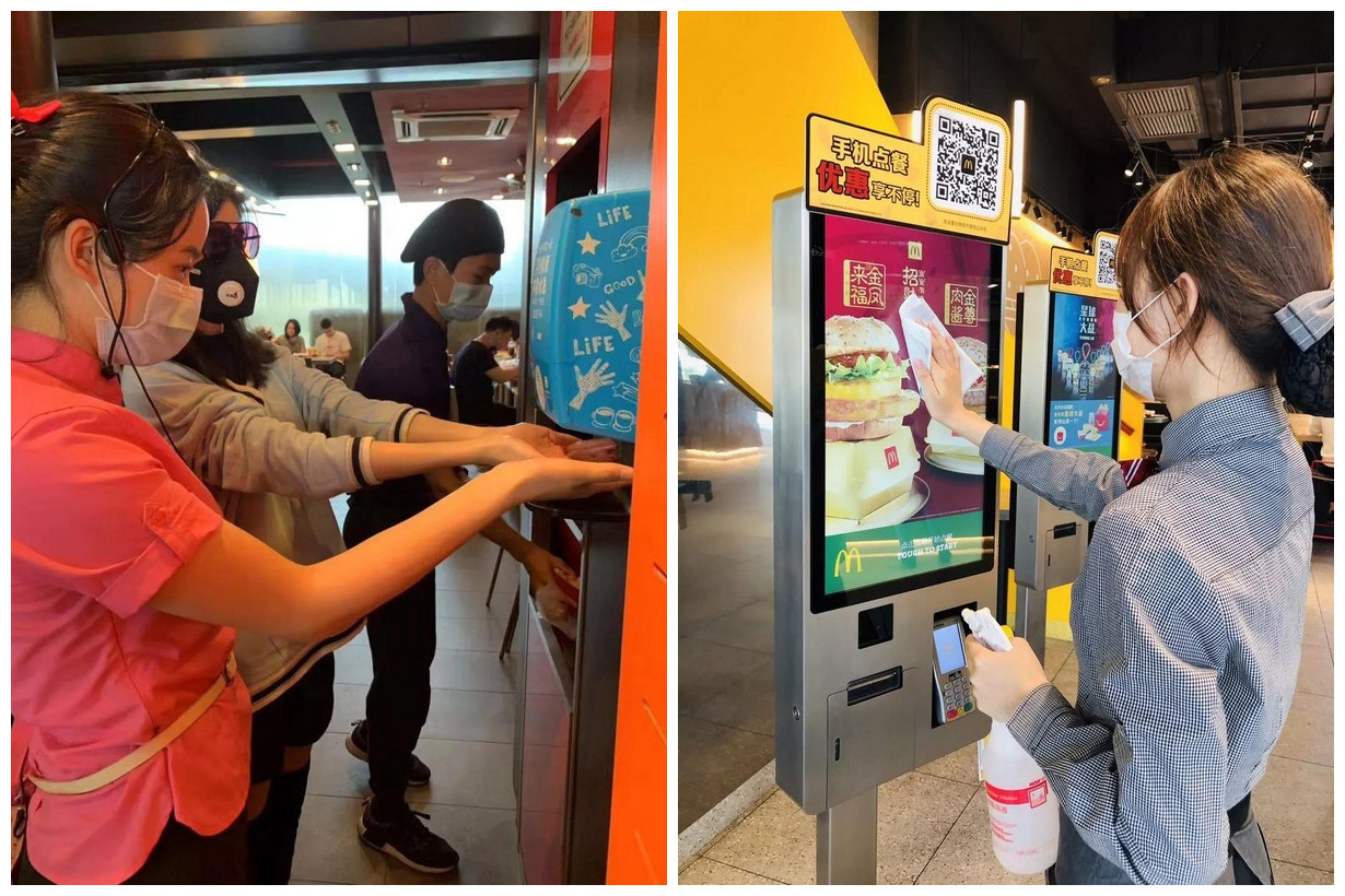 據(jù)了解,目前全國所有的麥當勞餐廳啟動上班員工測溫流程,并提高員工洗手消毒頻次,全國餐廳全員佩戴口罩。在餐廳為顧客提供免洗洗手液,對所有餐廳的通風系統(tǒng)和顧客常接觸的設施,強化消毒并增加頻次,包括大門把手、自助點餐屏、樓梯扶手、柜臺臺面、取餐區(qū)、桌椅、餐盤、兒童椅、兒童樂園等。
